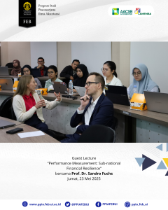 Jumat, 23 Mei 2025 telah diadakan kuliah Dosen tamu dari ZHAW School of Management and Law yaitu Prof. Dr. Sandro Fuchs dan tim untuk mengisi dan saling berdiskusi baik dengan dosen dan Mahasiswa dalam Mata Kuliah PPIA FEB UI : Topik dan Riset Keuangan dan Anggaran Publik yang diampu Ibu Yulianti, PhD.