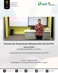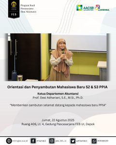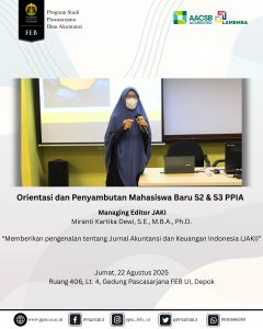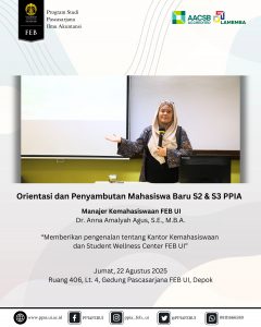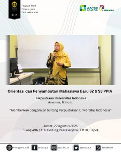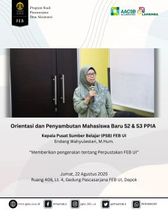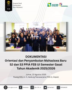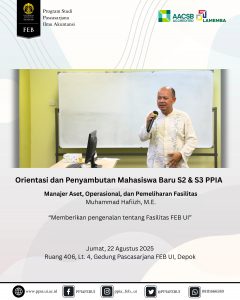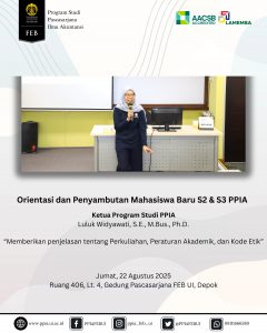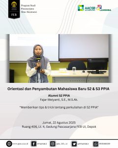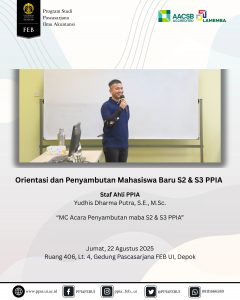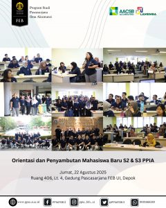 Jumat, 22 Agustus 2025 – Kegiatan Orientasi dan Penyambutan Mahasiswa Baru program S2 dan S3 PPIA FEB UI berlangsung dengan lancar, interaktif, dan penuh semangat. Acara ini menjadi momen penting bagi para mahasiswa baru untuk mengenal lebih dekat dengan lingkungan akademik, sistem perkuliahan, serta fasilitas yang tersedia di PPIA FEB UI.