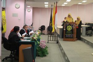 dihadapan Hilda Rossieta, S.E., Ak., M.Comm., Ph.D. (Ketua Penguji), dan Dr. Dwi Martani, S.E., Ak, Prof. Dr. John Hutagaol, Dr. Djoni Hartono, S.Si., M.E. dan Dr. Budi Frensidy, S.E,. M.Com sebagai Anggota Penguji.